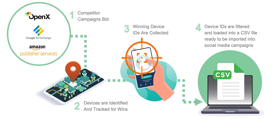 Filtering for the AAID and App ID data relevant to your competitors, SmartTouch can identify and track devices that engage with your competitor campaigns, through clicks, geo-location conversions, or both.